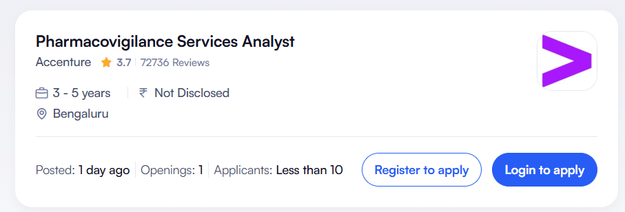 This role is ideal for experienced pharmacovigilance professionals looking to advance their careers in drug safety and regulatory operations. Working with Accenture provides exposure to global safety databases, international regulatory frameworks, and large-scale pharmacovigilance projects. It also offers a stable career path with opportunities for growth into senior PV and regulatory roles.