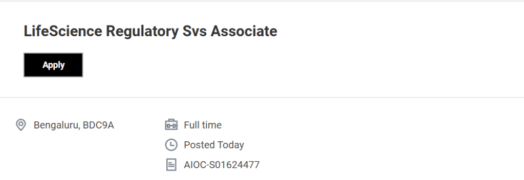 To support its growing regulatory operations team, Accenture is hiring skilled professionals for the role of Life Science Regulatory Services Associate in Bengaluru. Accenture Hiring Life Science Regulatory