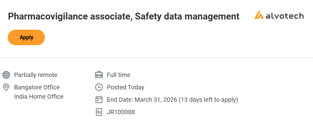 Candidates who successfully complete the interview process may receive further onboarding instructions. Alvotech Hiring Pharmacovigilance Associate Job