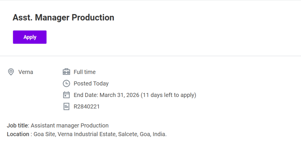 The selected candidate will be part of Sanofi’s manufacturing team at the Goa site, which specializes in tablet production. The facility operates with advanced manufacturing systems and focuses on delivering high-quality products with strict adherence to safety and compliance standards. Assistant Manager Production Job at Sanofi