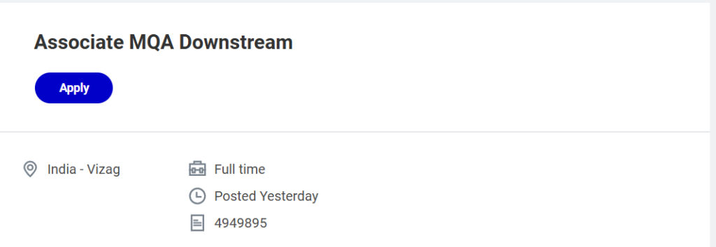 | Job Title | Associate MQA Downstream |