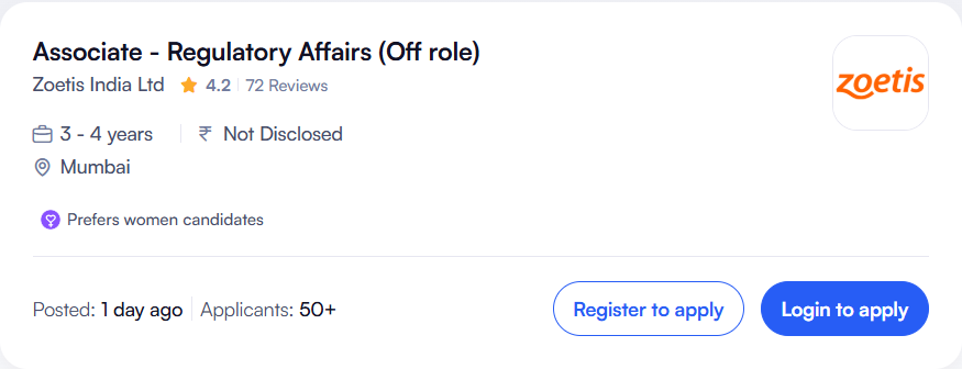 Associate Regulatory Affairs Job at Zoetis in Mumbai for B.Pharm M.Pharm professionals with experience in drug registration and regulatory submissions.