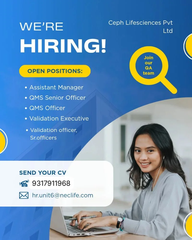 This hiring drive by Ceph Lifesciences presents an excellent opportunity for QA professionals seeking growth in QMS and Validation domains. Working in Baddi, one of Indiaโs established pharmaceutical hubs, offers exposure to regulated manufacturing practices and audit-driven quality systems. The variety of roles available allows candidates at different career stages to find suitable positions while gaining experience in end-to-end quality assurance operations. Professionals joining Ceph Lifesciences can enhance their regulatory expertise, validation knowledge, and long-term career prospects in pharmaceutical quality functions. Ceph Lifesciences Hiring QA QMS