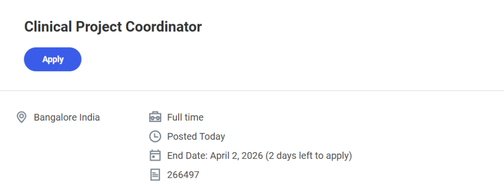 If you are looking to begin or grow your career in clinical research and project coordination, this opportunity can be a strong starting point. A reputed global organization is inviting applications for a Clinical Project Coordinator role in Bangalore. This position is ideal for candidates who are detail-oriented, organized, and interested in working within structured clinical environments. Fresh graduates and candidates with minimal experience are also encouraged to apply.
