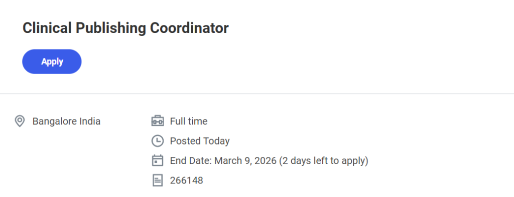 We are not affiliated with Labcorp or its recruitment process. Candidates are advised to verify job details directly through the company’s official career website before applying. IndiaPharmaJobs.in does not charge any fee for job information or applications. Clinical Publishing Coordinator Job at Labcorp