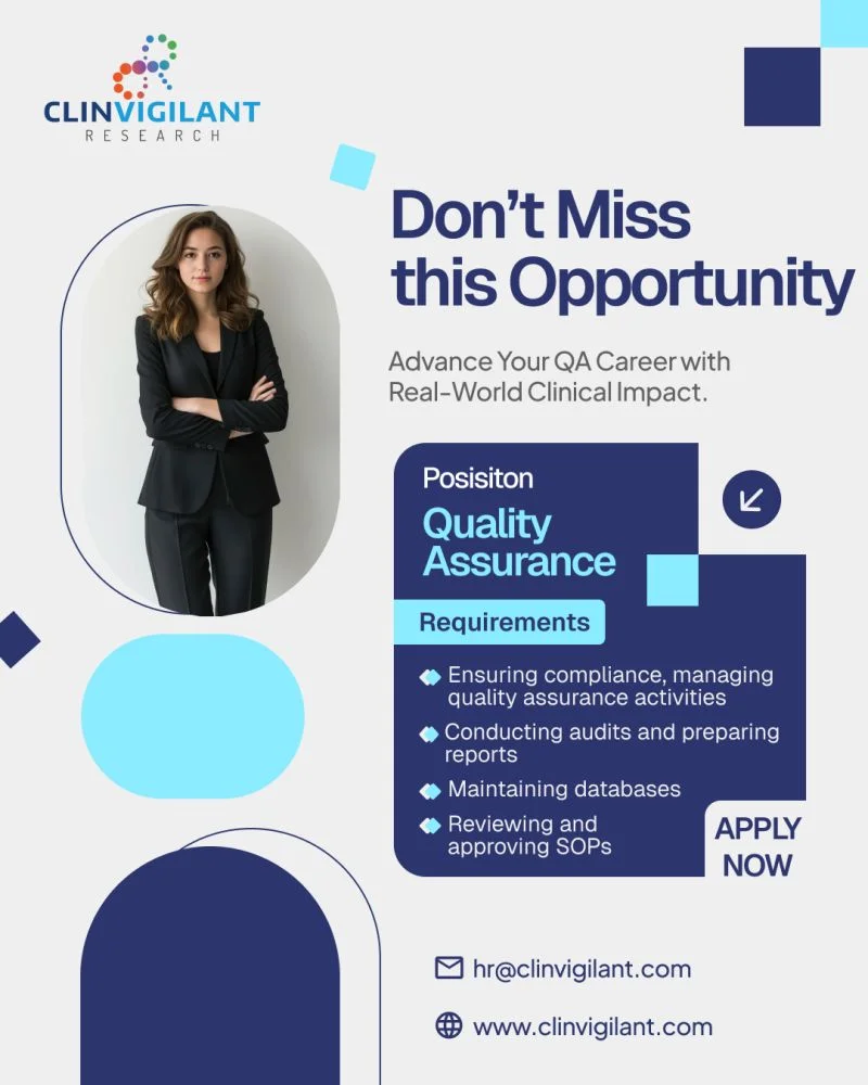 This opportunity at Clinvigilant is ideal for professionals aiming to grow in clinical quality assurance and regulatory compliance. The role provides exposure to real-world clinical trial quality systems, SOP management, and audit processes.