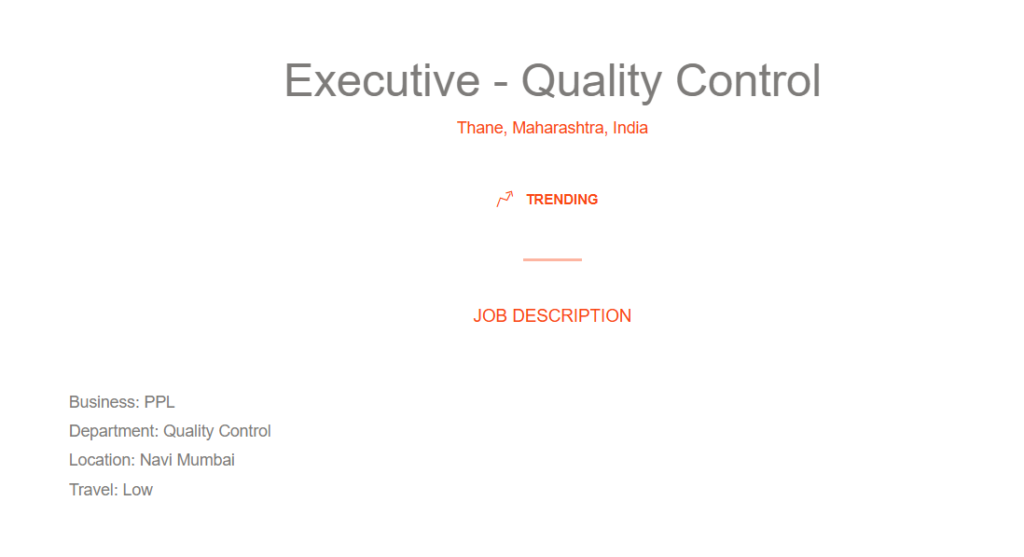 IndiaPharmaJobs.in is an independent pharmaceutical job information platform and is not affiliated with Piramal Pharma Solutions or Piramal Group. All job-related information is shared for informational purposes only. Candidates are advised to verify details and apply only through official company channels. Executive Quality Control Jobs