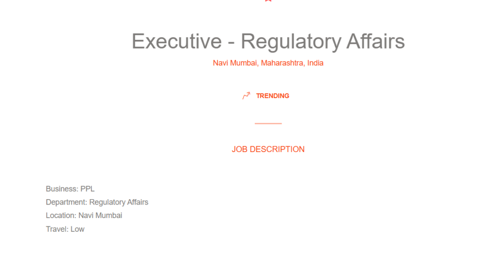 IndiaPharmaJobs.in is an independent pharmaceutical job information platform and is not affiliated with Piramal Pharma Solutions or Piramal Group. All job details are shared for informational purposes only. Candidates are advised to apply through official company channels and verify information directly from the employer. Executive Regulatory Affairs Jobs