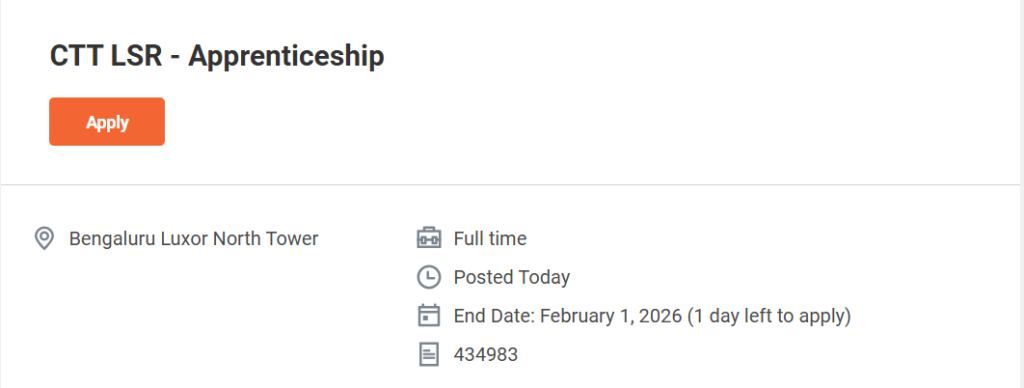 - Position Name: CTT LSR – Apprenticeship
