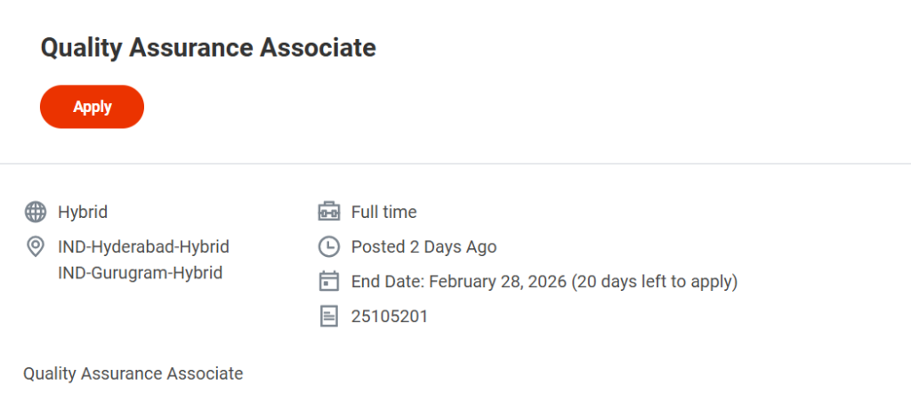 • Ideal role for freshers and early-career professionals entering Quality Assurance