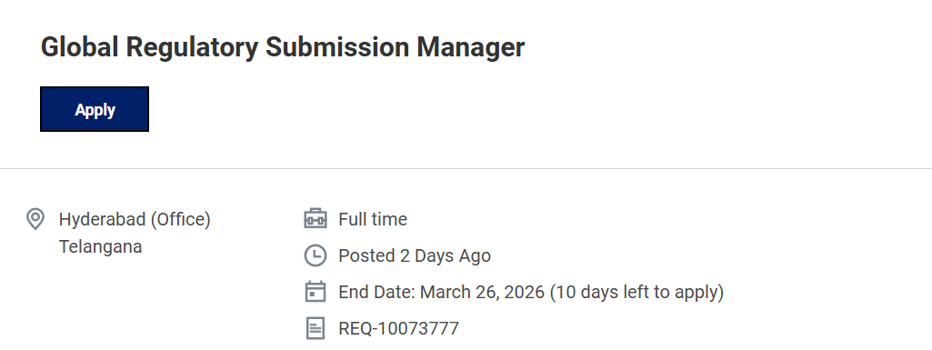 Regulatory affairs professionals with experience in global submissions and regulatory documentation management can explore an excellent opportunity with Novartis. The company is currently hiring for the position of Global Regulatory Submission Manager at its Hyderabad office.