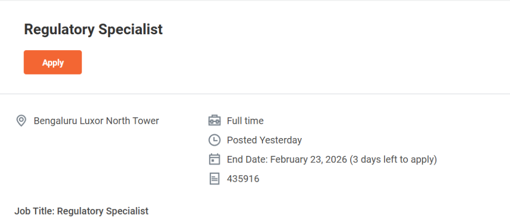If you are aiming to build a long-term career in international regulatory affairs, this role offers an excellent platform. GSK Hiring Regulatory Specialist in Bengaluru