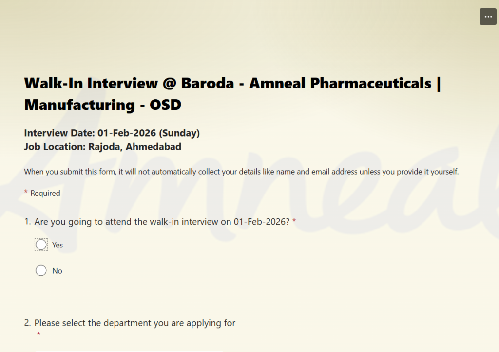 Candidates are advised to reach the venue on time with all required documents. Amneal Pharmaceuticals Hiring for OSD Manufacturing Roles