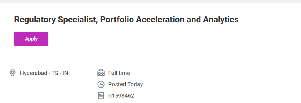Bristol Myers Squibb Hiring Regulatory Specialist Job Hyderabad global regulatory affairs portfolio analytics pharma careers apply now global opportunity.