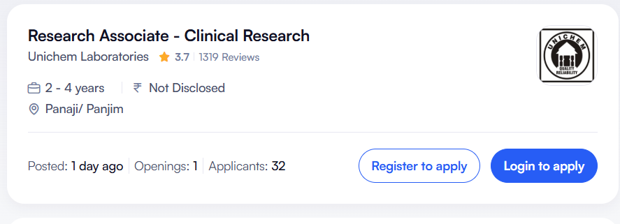 IndiaPharmaJobs.in is an independent job information platform sharing verified pharmaceutical and clinical research job opportunities. We are not affiliated with Unichem Laboratories or any hiring organization. Applicants should verify job details independently and apply through official platforms only. Unichem Laboratories Hiring Research Associate Clinical Research