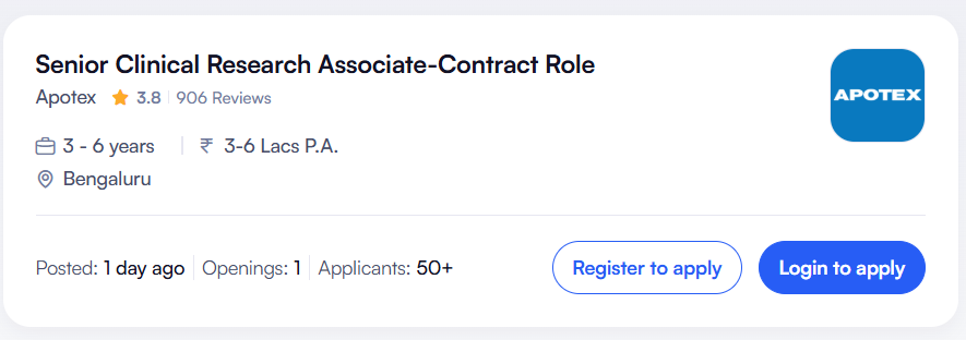 IndiaPharmaJobs.in is an independent job information platform sharing verified pharma and clinical research job updates. We are not affiliated with Apotex or any hiring organization. Candidates should apply only through official platforms and verify details independently. Apotex Hiring Senior Clinical Research Associate Job