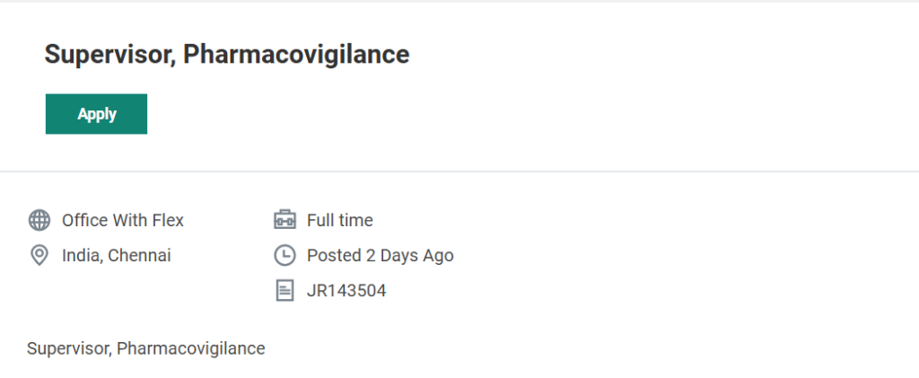 IndiaPharmaJobs.in is an independent pharmaceutical job information platform and is not affiliated with ICON plc. We provide job updates for informational purposes only. Candidates should apply through official company channels and verify all details independently before applying. ICON Hiring Pharmacovigilance Supervisor Job