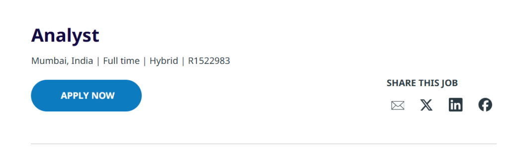 Interested candidates can apply online through the official IQVIA careers portal by searching for the role Analyst (Job ID: R1522983). IQVIA Hiring Analyst Job in Mumbai