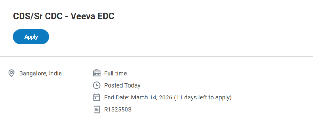 - Search for “CDS / Sr CDC – Veeva EDC – Bangalore” on the IQVIA careers website