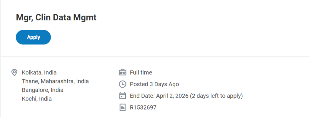 IQVIA Hiring for Manager Clinical Data Management Job in multiple India locations. Apply online before April 2, 2026. Senior role.