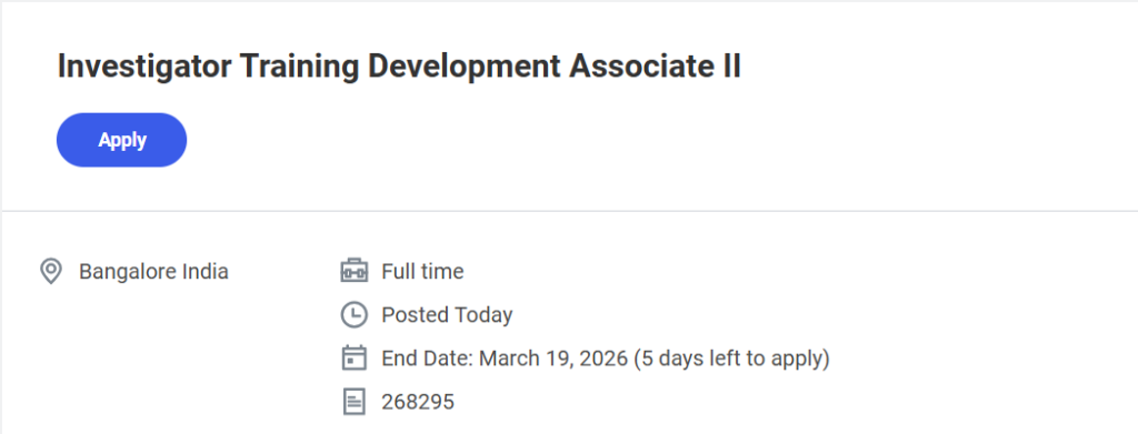 | Job Title | Investigator Training Development Associate II |