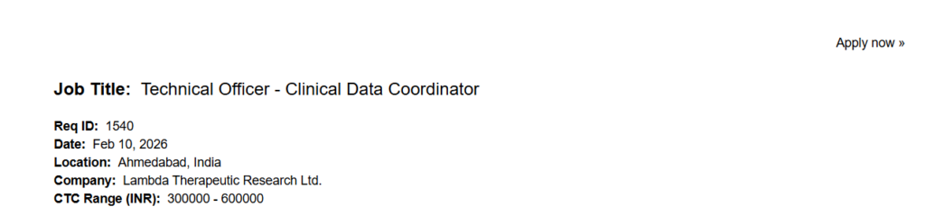 IndiaPharmaJobs.in is an independent job information platform and is not associated with Lambda Therapeutic Research Ltd. or its recruitment partners. Job details are published for informational purposes only. Applicants should verify all information from official company sources before applying. Lambda Hiring Clinical Data Coordinator Jobs