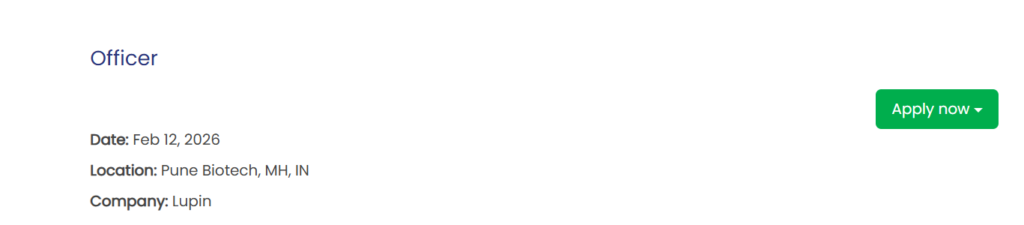 IndiaPharmaJobs.in is an independent job information platform and is not affiliated with Lupin Limited or any recruitment agencies. We publish job details for informational purposes only. Applicants should always verify information and apply through the official company website. Lupin Hiring Officer Secondary Packing Jobs in Pune
