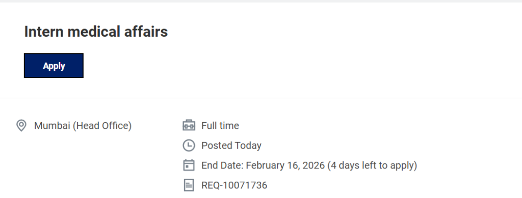 Candidates should apply through the official company career portal before the deadline. Medical Affairs Intern in Mumbai