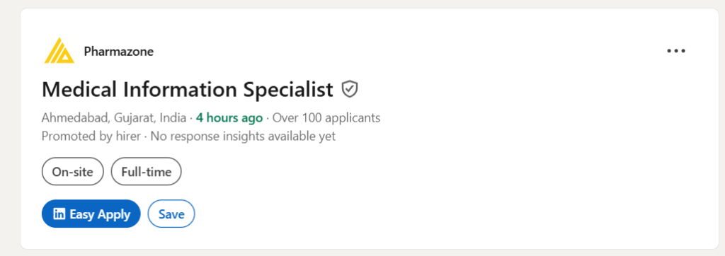 Pharmazone hiring Medical Information Specialist 2026 Ahmedabad. Check eligibility, salary, skills, and application details for pharmacovigilance and medical communication jobs India.