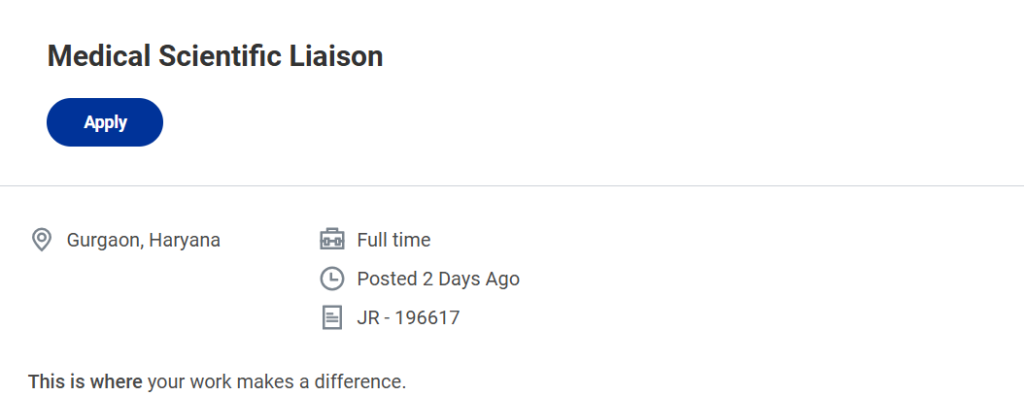 The Medical Scientific Liaison role is based in Gurgaon, Haryana, and operates as a field-based position. Professionals in this role frequently interact with healthcare providers, clinical experts, and internal teams to support scientific and medical initiatives.