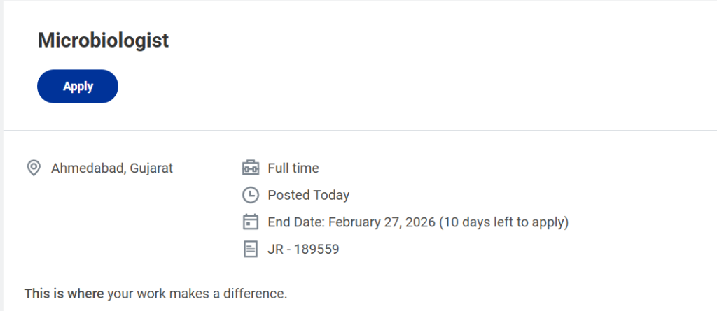 IndiaPharmaJobs.in is an independent job information platform that shares verified pharma and life sciences opportunities. We are not affiliated with Baxter or its recruitment team and do not charge any application fees. Candidates should always verify job details on the official company careers page before applying. Microbiologist Job in Ahmedabad at Baxter