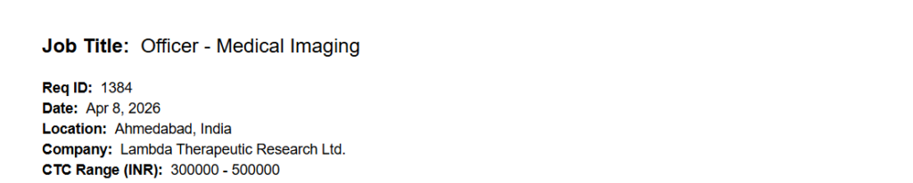 Apply for Officer Medical Imaging job at Lambda Therapeutic Research Ltd 2026. Check eligibility, salary, and clinical imaging role details now.