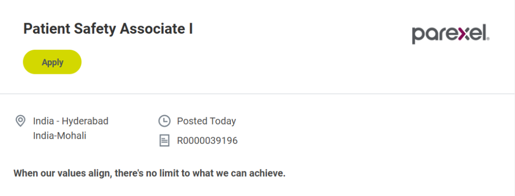 Apply for Patient Safety Associate I at Parexel 2026. Check eligibility, salary, job role details, and application process today online.