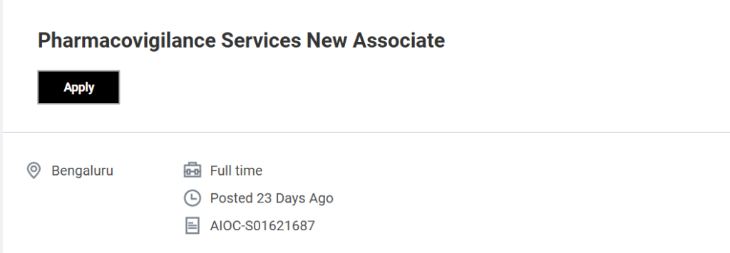 This role is an excellent starting point for graduates looking to enter the pharmacovigilance and drug safety domain. Accenture offers structured onboarding, strong compliance training, and exposure to global safety reporting standards, making it an ideal platform for building a long-term career in pharmacovigilance. Pharmacovigilance Services New Associate