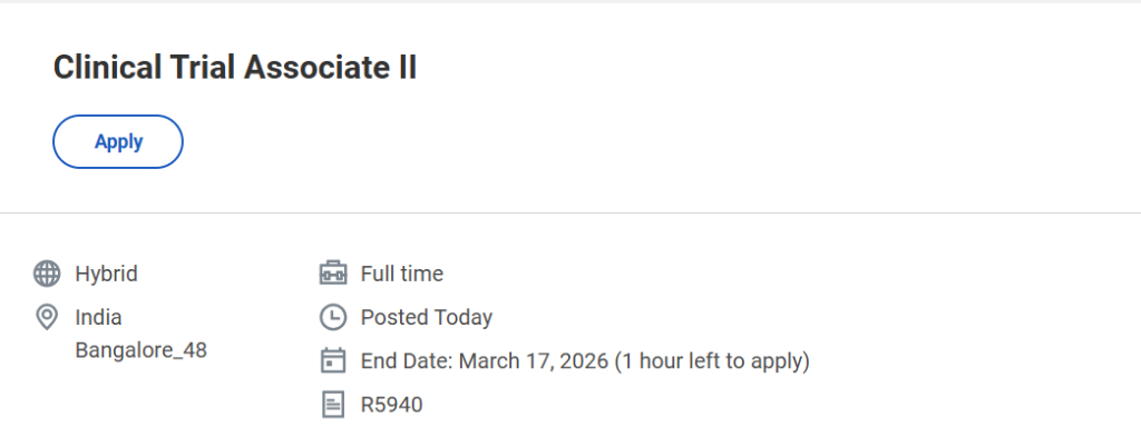 Interested candidates who meet the eligibility requirements can apply through Premier Research’s official careers portal. Applicants should ensure that their resumes highlight relevant clinical research experience, documentation management skills, and knowledge of regulatory guidelines. Premier Research Hiring Clinical Trial Associate Job