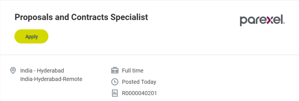 Apply for Parexel Proposals and Contracts Specialist role in Hyderabad. Explore eligibility, responsibilities, and career growth opportunities in clinical research.