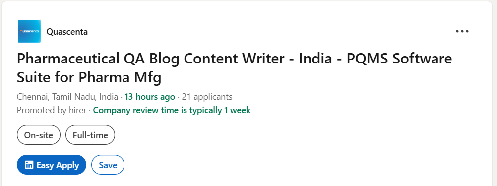 Working in a pharma QA content role allows you to build authority in regulatory topics, expand into thought leadership, and gain exposure to enterprise compliance tools. For professionals seeking alternatives to lab or plant-based roles, this opportunity offers a strong career pathway into consulting, product education, and pharma SaaS domains.