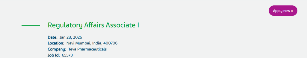 IndiaPharmaJobs.in is an independent job information platform that shares pharmaceutical and life sciences career updates for informational purposes only. We are not affiliated with Teva Pharmaceuticals or any recruiting organization. Candidates should independently verify job details and must not pay any fees for job applications or recruitment processes. Regulatory Affairs Associate I Jobs