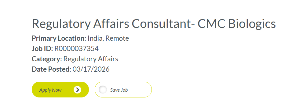 - Search for the role: Regulatory Affairs Consultant – CMC Biologics