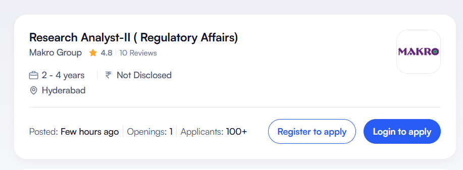 Regulatory Affairs Job in Hyderabad at Makro Group for regulatory affairs role. Apply online for pharma research and clinical trial analysis job.