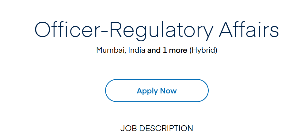 - Job Title: Officer / Assistant β Regulatory Affairs