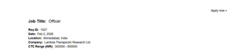 This role provides a strong platform for regulatory professionals to deepen their expertise in Indian clinical trial regulations while working in a global CRO setup. Lambda Therapeutic Research offers exposure to diverse regulatory submissions, international standards, and structured compliance systems. The position is well-suited for candidates aiming to build long-term careers in clinical research regulatory affairs. Regulatory Affairs Officer Jobs