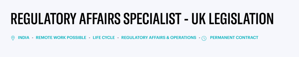 Job TitleRegulatory Affairs Specialist – UK Legislation