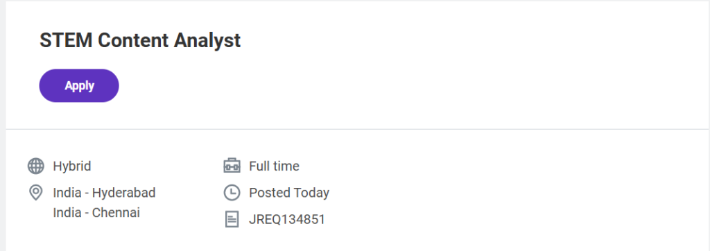 Interested and eligible candidates should apply through the official Clarivate careers portal using the details below: STEM Content Analyst Regulatory Intelligence Jobs