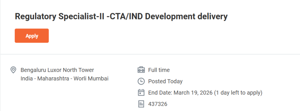 Regulatory Specialist-II – CTA/IND Development Delivery