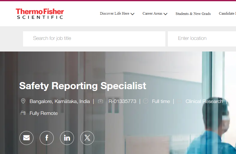 IndiaPharmaJobs.in is an independent job information website that shares verified pharmaceutical and healthcare job updates. We are not affiliated with Thermo Fisher Scientific or any organization mentioned in this article. Applicants are advised to verify job details from the official company website before applying. Safety Reporting Specialist Job Remote Clinical Research Role at Thermo Fisher Scientific
