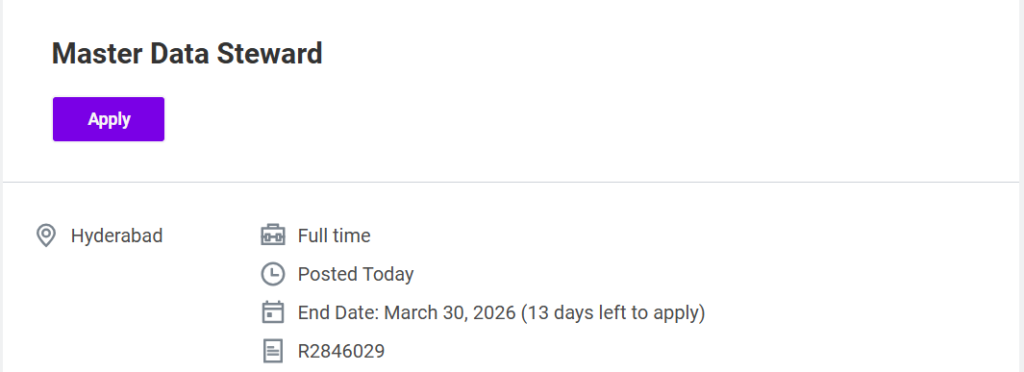 The opening is within Sanofi’s Master Data Management (MDM) and Supply Chain operations team. The selected candidate will play an important role in maintaining high-quality master data across systems used by multiple departments. Sanofi Hiring Master Data Steward Job