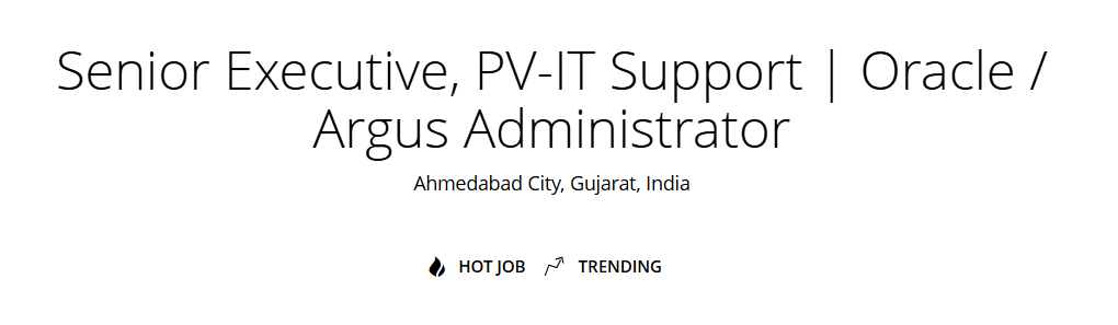 Position: Senior Executive – PV-IT Support (Oracle Argus Administrator)