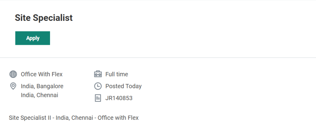 | Job Title | Site Specialist II |