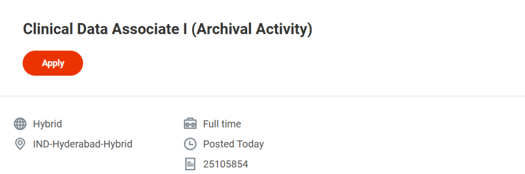 Interested and eligible candidates should apply through the official Syneos Health careers portal using the job requisition ID mentioned above. Ensure that your resume highlights relevant clinical data management or archival experience for better chances of shortlisting.